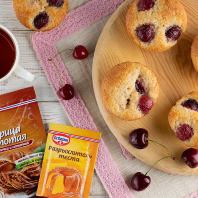 Из сочной черешни получаются очень ароматные мини-кексы. Приготовили и подали на стол. Удобно, красиво и невероятно вкусно!