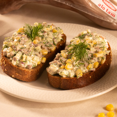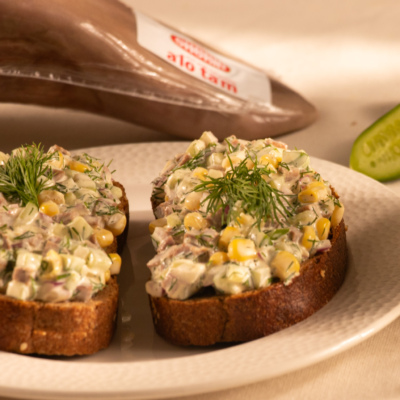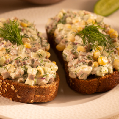 Намазка на скорую руку — язык, хрустящий огурчик, кукуруза и горчица. Вкусно, сытно и без плиты.