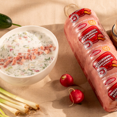 Один суп — три варианта: с нежной вареной колбасой, ароматной ветчинной или пикантным говяжьим языком. Овощи, зелень и кефир объединяют их в легкое и освежающее блюдо для жарких дней.