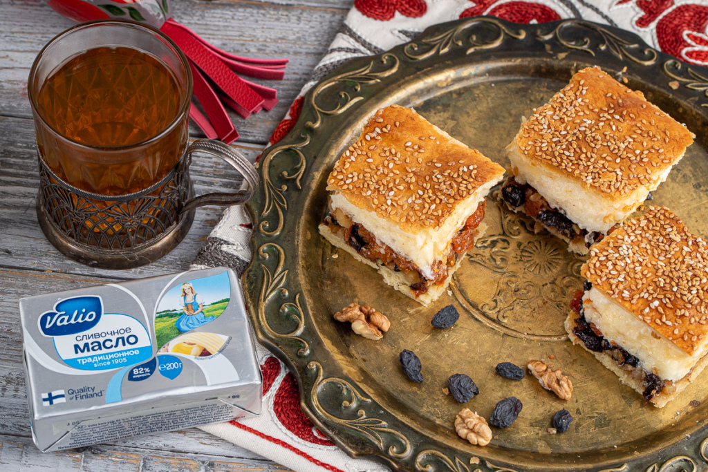Нежное, рассыпчатое и очень вкусное тесто, двойная начинка: из смеси сухофруктов и мягкой меренги — просто необыкновенное сочетание! Обязательно попробуйте приготовить!