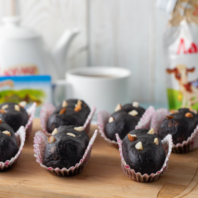 Обвалять каждое пирожное в какао, украсить орешками и убрать в холодильник на 2 часа.