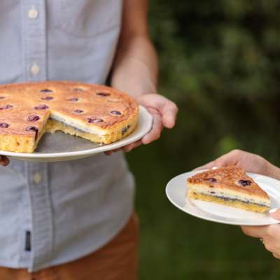 Сбоку сделать углубления и отсадить заварной крем. Украсить пирожное можно свежими ягодами или взбитыми сливками.