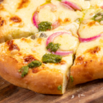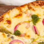Хорошей пицце не обязательно нужен томатный соус. «Бьянка» (в переводе с итальянского «белая») — потрясающая пицца с соусом из рикотты, пармезана и моцареллы с каперсами и розовым луком.