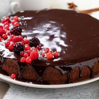 Вылить слегка теплую глазурь на уже остывший пирог.