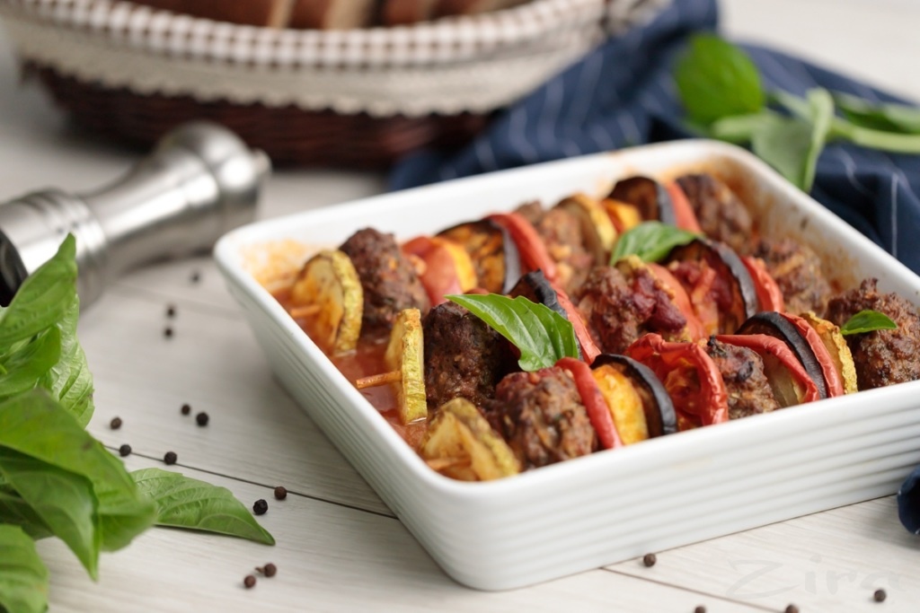 Рататуй — одно из самых любимых классических блюд лета, когда овощей на прилавках не много, а очень много. Но чтобы это блюдо сделать более сытным мы решили приготовить его с мясным фаршем.