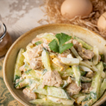 Простой и быстрый в приготовлении, а самое главное — полезный и питательный салат с печенью трески. Салат содержит много белка и подходит тем, кто следит за своим питанием.