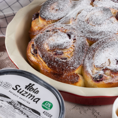 Вишня — это лучшая начинка для пышных и ароматных булочек. А если в начинку добавить нежный крем из сузьмы, то такие булочки вам понравятся еще больше.