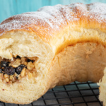 Видеорецепт: сдобный пирог с орехами и кишмишом