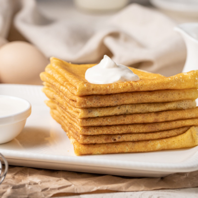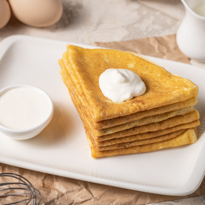 Тонкие кружевные блинчики с сыром всегда будут уместны к завтраку и на перекус. Блины готовятся на рисовой муке и получаются очень нежным и легкими. Из указанных ингредиентов получется 8-10 блинчиков.