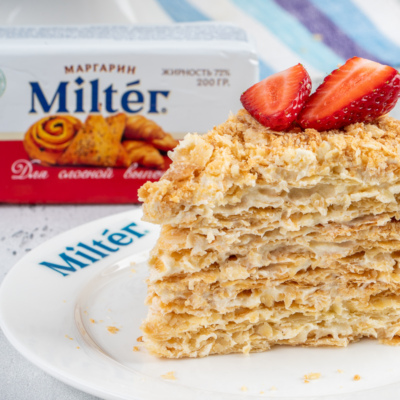 Рецепт в меру сладкого и хрустящего торта «Наполеон» с масляным кремом, который станет украшением праздничного стола.