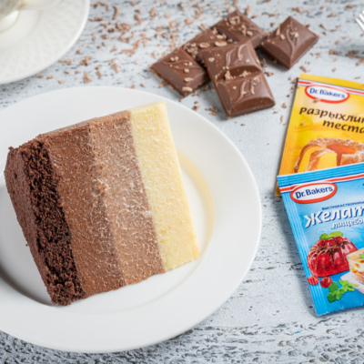 Невероятно нежный и очень красивый в разрезе торт «Три шоколада» несомненно станет украшением праздничного стола.