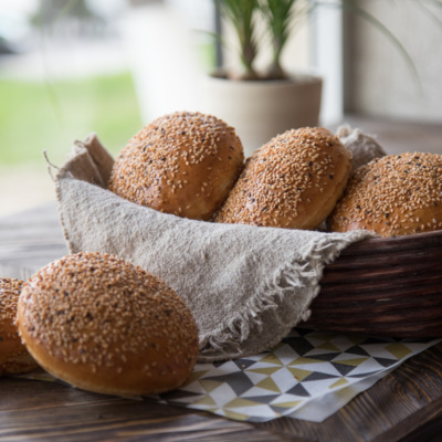 Переложить на противень застеленным пергаментом. Смазать яйцом и присыпать кунжутом. Выпекать при 180 C примерно 25 минут.
