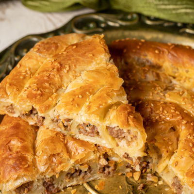 Турецкая лепешка (бурек) с мясом — это очень вкусное, сочное, ароматное блюдо, его можно подавать на горячее или для перекуса. Главный секрет блюда — очень тонкое тесто, которое после выпечки станет нежным и хрустящим.
