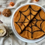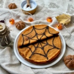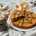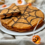 Яркие тыквенные блинчики с ароматом корицы, украшенные эффектным узором паутины — оригинальный десерт на Хэллоуин. С узорами можно поэкспериментировать и придумать новый интересный дизайн.
