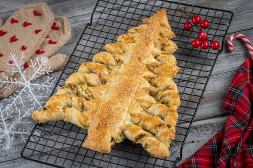 «Новогоднее дерево» из слоеного теста требует минимальных временных затрат и отличается оригинальной подачей. Так же, заменяя начинки от соленых до сладких, вы можете подать его и с соусом в начале трапезы и с чаем на десерт, если сделаете начинку из сахара и корицы. Приблизительная стоимость готового блюда — 60 000 сум *стоимость актуальна на момент … Читать далее Видеорецепт: закусочная «Ёлка» с соусом песто
