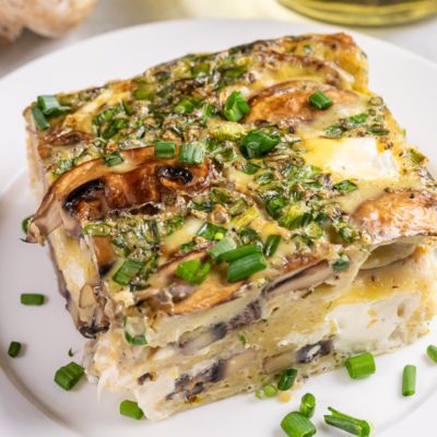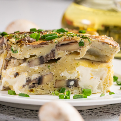 Соединив грибы, зеленый лук, яйца и сыр фетакса можно получить замечательную запеканку на завтрак или ужин. Готовится она очень легко и быстро — достаточно немного обжарить грибы, смешать с другими ингредиентами и запечь в духовке.