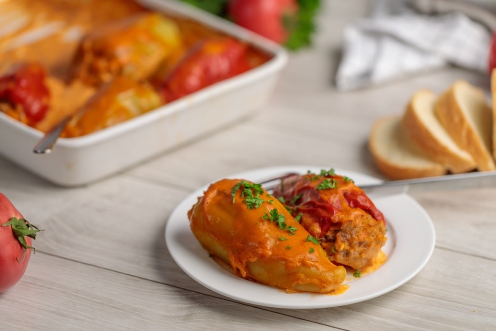 Запеченные фаршированные перцы в сметанно-томатном соусе