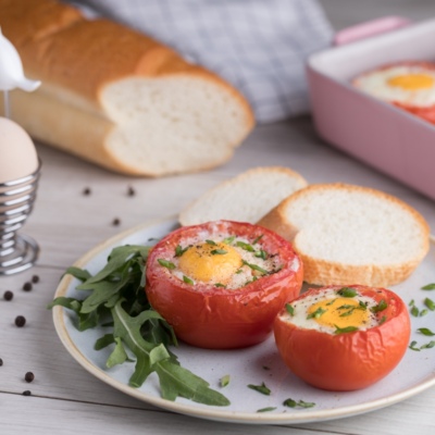 Даже привычный завтрак из яиц можно приготовить по-разному. Попробуйте яйца запечь в помидорах. Это очень просто и выглядит аппетитно.