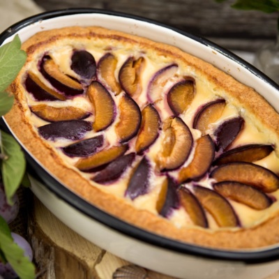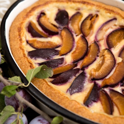 Множество даров преподносит нам осень, и один из них — слива. Из нее можно сварить варенье, приготовить булочки со сливовым джемом или, как мы сделали сегодня, испечь заварной пирог.