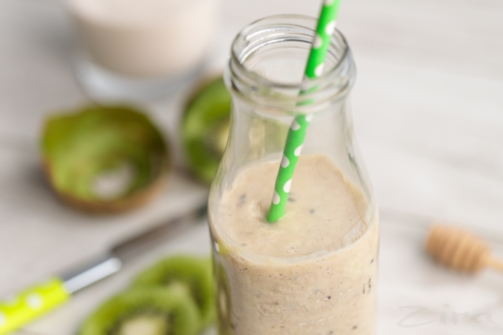 Banan, kivi va kefirdan tayyorlanilgan smuzi