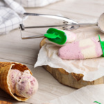 Mikser yordamida muzdek qaymoqlarni yaxshilab ko'pirtirib olamiz.