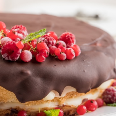 Tortishdan oldin rezavor mevalar bilan bezatib, so'ng dasturxonga tortamiz.