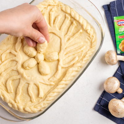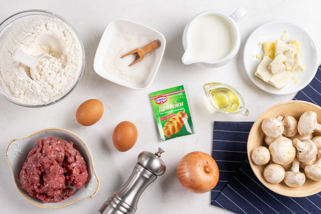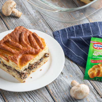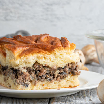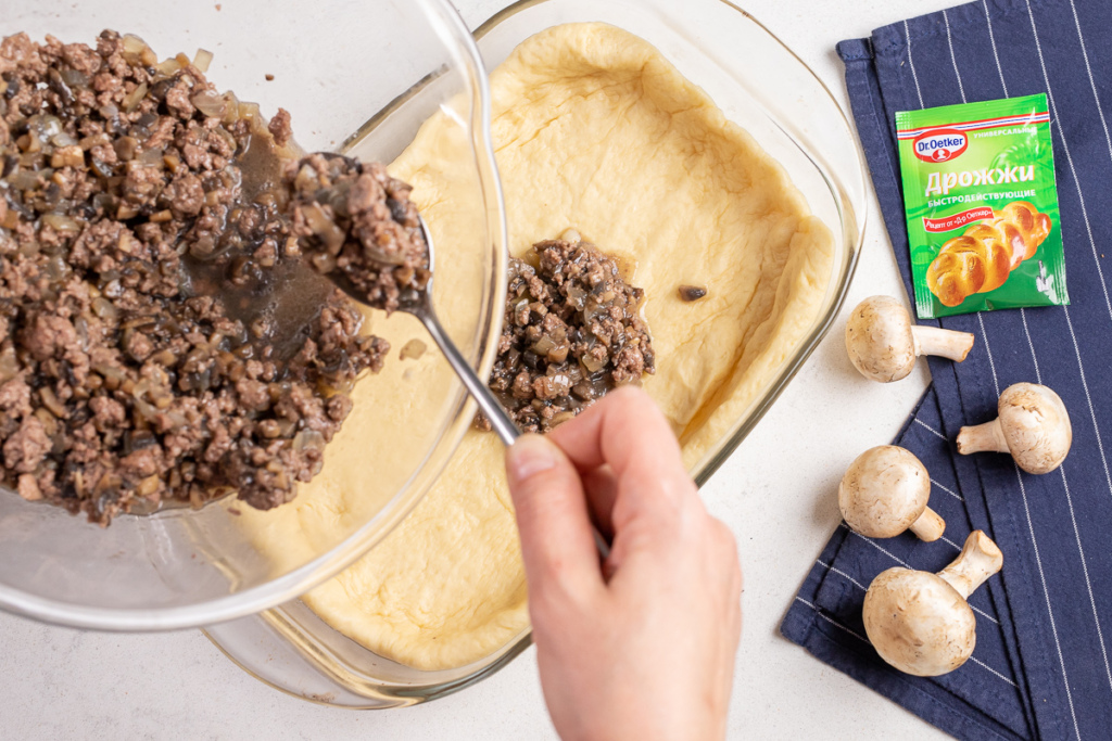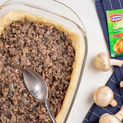 Batafsil fotoretsept: go’sht va qo’ziqorinli oshirma pirog