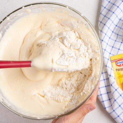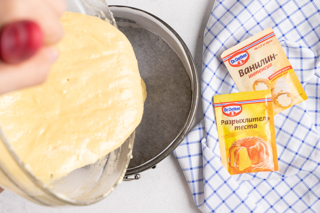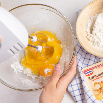 Sariyog’ni eritamiz, xamirga qo’shib, silikon lopatka bilan aralashtiramiz.