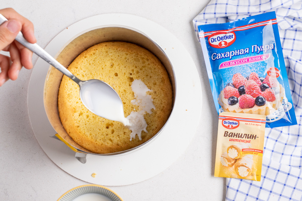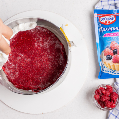 Batafsil fotoretsept: rezavor mevali jele bilan biskvit tort