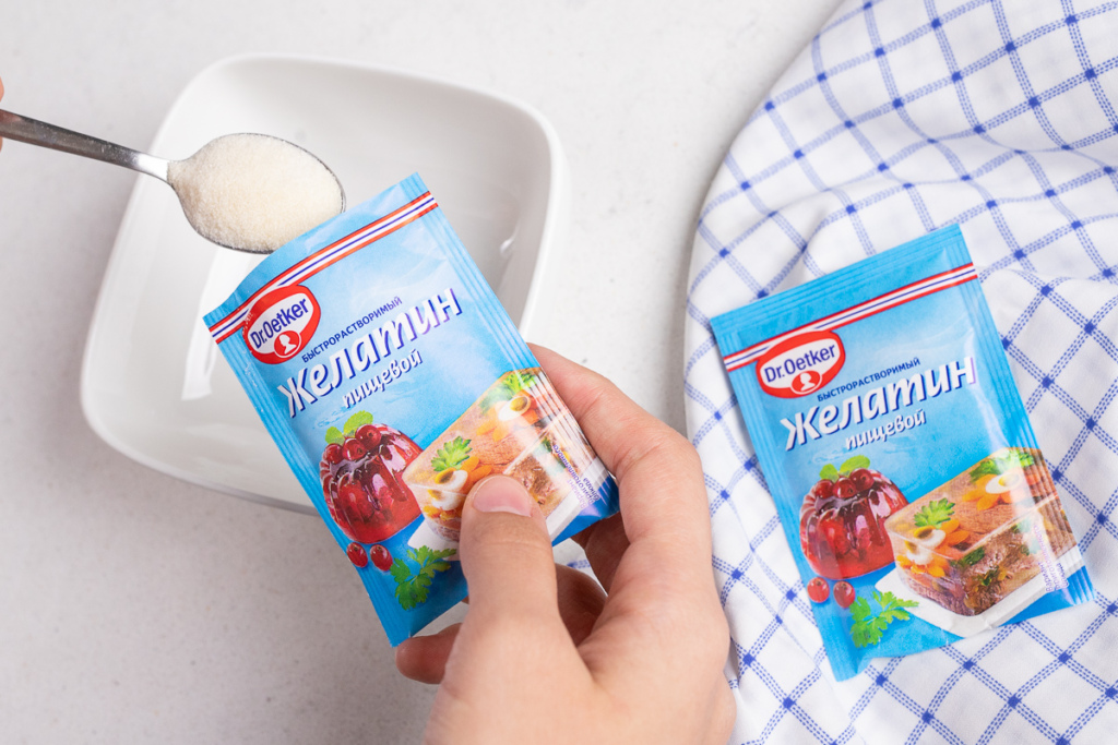 Mikroto’lqinli pech yoki suv banyasida jelatinni eritamiz, lekin qaynatmaymiz.