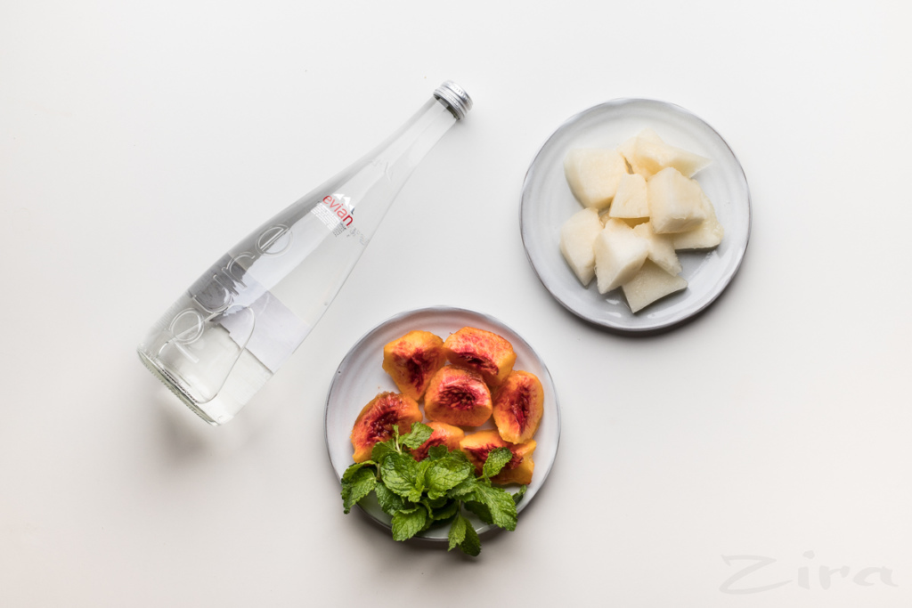 Smuzining muhim tarkibiy qismidan biri bu – mineral suvidir. Bunday smuzi tayyorlash uchun minerallarga boy Evian tabiiy suvi juda qo’l keladi.