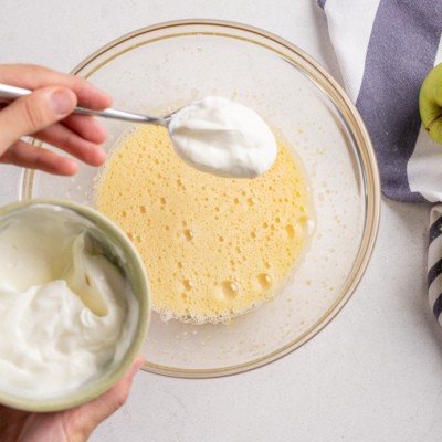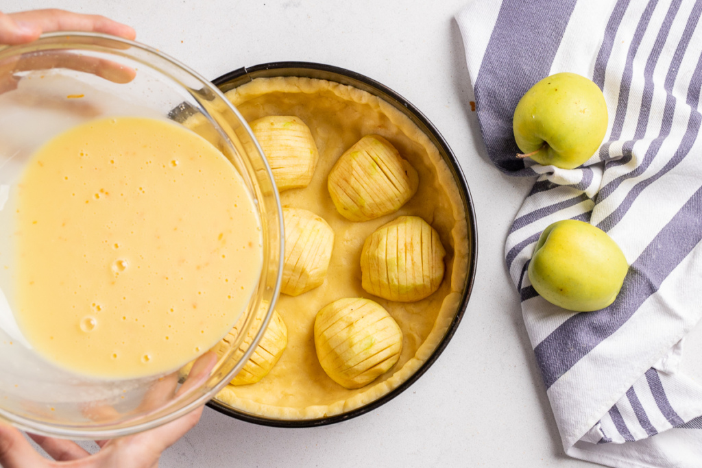 Batafsil fotoretsept: smetanali quymoqli olmali pirog