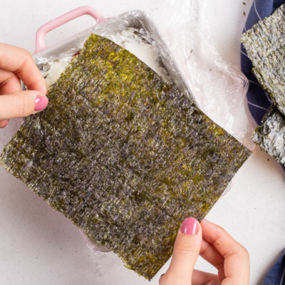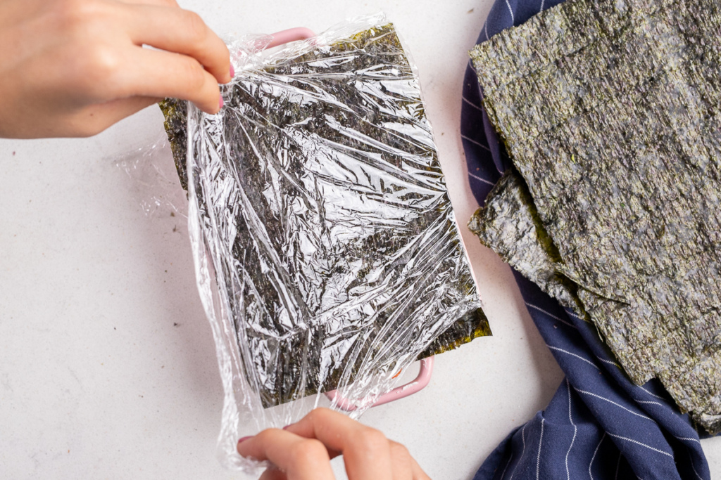 15 sm diametrlik qolipga, chetlari chiqib turadigan qilib, ozuqa plyonkasini solamiz.