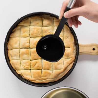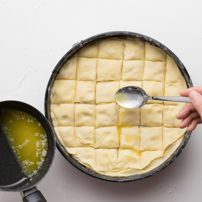 Eslatma: eritilgan sariyog' ostida oqimtir modda, ya'ni uning qaymog'i hosil bo'ladi. Ana shu qaymog'ini iloji boricha ishlatmaslikka harakat qiling, aks holda u pishirish jarayonida qorayib qoladi va paxlavamizga chiroyli bo'lmagan ko'rinish baxsh etadi.