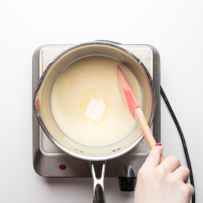 Qoshiq bilan shokoladga naqshlar berib, 15-20 daqiqa qotishi uchun muzlatgichga olib qo'yamiz.