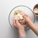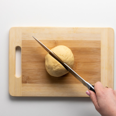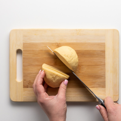 Qattiq xamir qorib olamiz. Xamirning qattiq bo'lishi bu me'yoriy holat. Xamirni uzoq, taxminan 10-15 daqiqa yaxshilab qorish kerak bo'ladi.