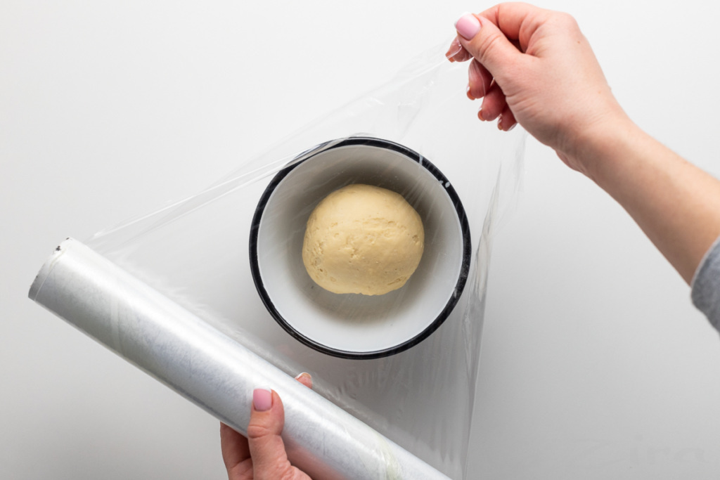 Xamirni ustini oziq-ovqat pelyonkasi bilan yopamiz va 25 daqiqaga tindirib qo'yamiz. Undan so'ng xamirni olib, yana mushtlaymiz. Xamir biroz yumshaydi va elastik holatga kiradi.