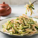 Bodring va xantal solingan tovuq filesidan salat