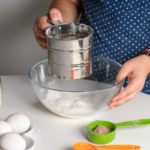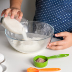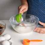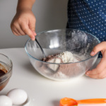 Alohida idishga shakar, un, kakao va qabartmani solib, aralashtirib olamiz.