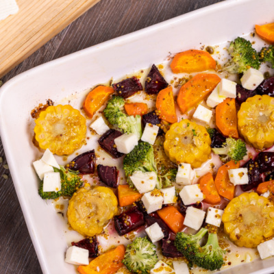 Gaz pechida pishirilgan brinza va sabzavotlar juda ishtahaochar ko’rinishga ega bo’ladi.