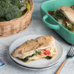 Brokkoli va pishloq solib pishirilgan tovuqli taom