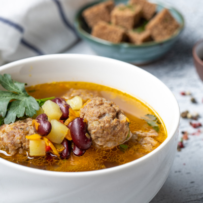 Frikadelka va loviya solib pishirilgan mana bunday sho’rva sovuq kunlarda organizmga juda xush yoqadi.