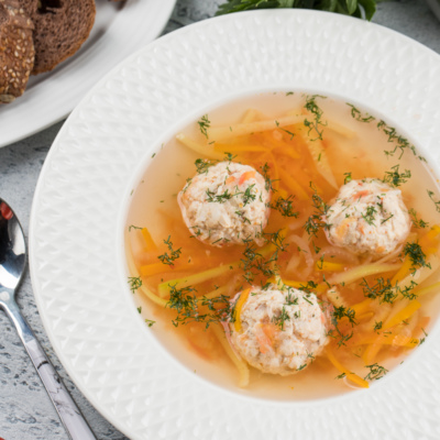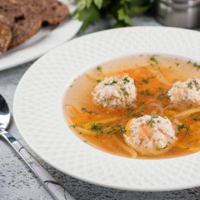 Frikadelka va qovoqchali lapshadan tayyorlangan yengil shoʻrva