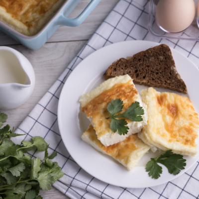 Har bir tuxumga 100 millilitrdan sut oʻlchab olamiz. Agarda sut unchalik yili boʻlmasa, unda 33-35% yogʻli qaymoq bilan 1:3 hisobda aralashtirib olamiz.