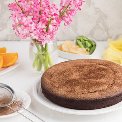 Gaz pechini 180 C darajaga qizdiramiz. Qolipga sariyog' surtib, ozroq kakaodan sepamiz, ortiqchasini esa qoqib tashlaymiz.