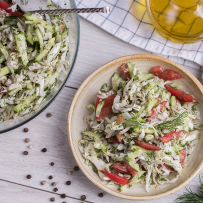 Bugun sizlarga tayyorlash jarayoni bir necha daqiqani oluvchi karam va pomidordan ajoyib salat tayyorlashni tavsiya qilamiz.