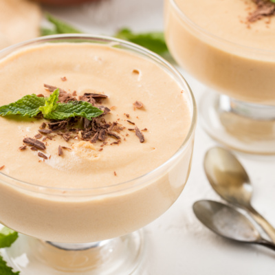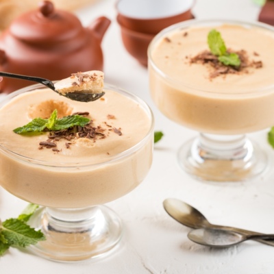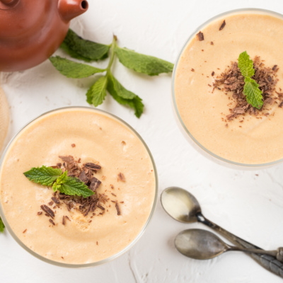 2-3 soatga sovutgichga olib qo'yamiz. So'ng esa qirilgan shokolad va yalpiz yaproqchalari bilan bezatamiz.