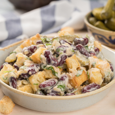 Loviya va suxariklardan tayyorlaniladigan mana bunday salat har bir bekajonga yoqishi aniq. Ayniqsa, uning tez va oson tayyorlanilishi esa kutilmagan vaziyatlarda juda qo’l keladi.
