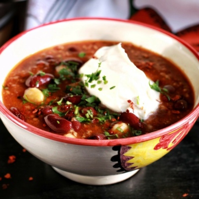 Chili kon karne sho'rvasini smetana va to'g'ralgan kashnich bilan birga dasturxonga tortamiz. Yoqimli ishtaha!
