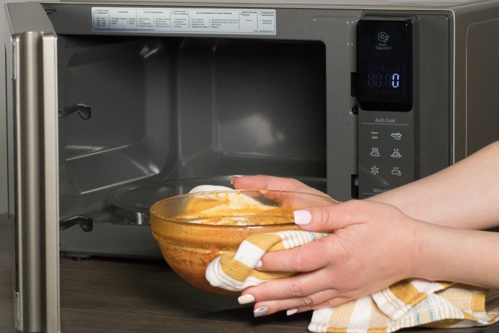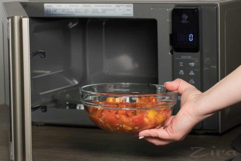 Mikroto'lqinli pechdan sabzavotlarni olamiz.